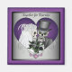 Happy bride and groom wedding skulls set in a purple and silver heart frame with TOGETHER FOR ETERNITY text.