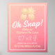 Wedding Decor Poster - Oh Snap Social Media Hashtag Templates - Elegant Faux Gold Foil Pineapple Couple on Pink Roses Floral Damask Paper Background.
