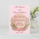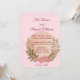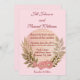 A soft pink colour, this wedding invitation features easy to use templates and personal customisation. Featuring a pink background with a pink and green floral circle, enter wedding information in the spaces provided. The back of the invitation features a lovely pink flower. Place your order today!