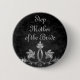 Gorgeous pin on button in a grungy black with a fancy leaf design on it in silvery grey. "Step Mother of the Bride" is written at the top.