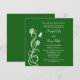 Succulents are one of the newest trends in wedding floral design. These exotic plants adorn a swirling vine, that subtly enhances the type on this dark green wedding invitation.