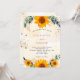 A white and golden watercolored background decorated with sunflowers, eucalyptus greenery and golden leaves and faux gold glitter dust. Personalize and add your names and party details.