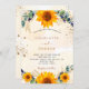 Wedding sunflowers eucalyptus gold glitter invitation