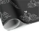Contemporary white wedding swans design with a scribbled heart between them on a black background.