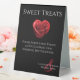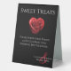Enhance your wedding reception decor with this modern and elegant Tabletop Sweet Treats Sign in Black with a Heart Shaped Red Rose. This beautifully designed sign seamlessly blends with your theme, adding a touch of elegance to your table. Explore the Collection for a beautifully modern-themed wedding.