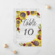 Sunflowers on white wood: Wedding Table Number Template. This Autumn Floral is simple yet elegant and is perfect for a stylish wedding. The neutral design features a minimalist card decorated with romantic spray of sunflowers with a white wood background.
