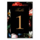 Wedding Table Number Card Dark Black Red Floral. Copper coloured text is fully customisable. The dark red background on back of card can be changed to black or any colour of your choice. Our ALEXANDRIA wedding suite collection is filled with florals on both black and red backgrounds all using a copper coloured text. Moody, elegant and modern.