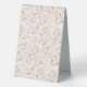 This wedding table number card is shown in the plastic tent style with a modern layout with a lovely champagne roses background print.