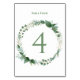 Wedding Table Number Card with Botanical Wreath