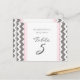 Elegant and modern light pastel blush pink, dark charcoal grey and white wedding table number cards with fun retro chevron zigzags stripes pattern. Customise these cards to create custom table number cards for each table at your wedding. Add your names and wedding date. Pattern available in a wide range of matching wedding products.