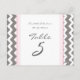 Wedding Table Number Cards Grey Pink Chevron