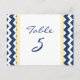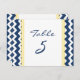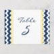 Elegant and modern bright lemon yellow, dark navy blue and white wedding table number cards with retro and fun chevron zigzags pattern. Customise these cards to create custom table number cards for each table at your wedding. Pattern available in a wide range of matching wedding products.