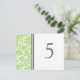Elegant and classic bright apple green, grey and white wedding table number cards with classic and chic vintage floral damask pattern. Customise these cards to create custom table number cards for each table at your wedding. Pattern available in a wide range of matching wedding products.