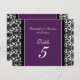 Elegant and classic eggplant dark purple, black and white wedding table number cards with romantic floral damask vintage pattern. Customise these cards to create custom table number cards for each table at your wedding. Add your names and wedding date. Pattern available in a wide range of matching wedding products.