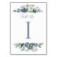Painted Greenery Wedding Table Number (Dusty Blue) 1: This woodsy table number features a eucalyptus bouquet tinted with shades of dusty blue.