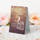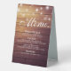 Wedding Seating Place / Table Number / Escort Card with Menu Card Templates - Elegant Mason Jar and String Lights on Rustic Wood Background.