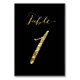 Wedding table numbers with gold foil effect numbers printed on black background - number 1