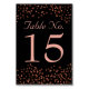 Chic black and rose gold table number cards for your elegant wedding- Faux rose gold foil confetti is scattered across the top and bottom edges. Coordinating rosy pink letters read Table No. and customised numeral against black background to really make the dots pop. Identical on other side. Customise each table number separately and add to your Zazzle shopping cart.