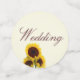 The design has Sunflowers with the words Wedding and also names and initials of the bride and groom.