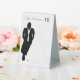 Wedding table number black and white bride and groom design. Customise this wedding table number with your own wedding details. Should you require any help with customising then contact us through the link on this page. Bride and groom black and white design personalised wedding table number