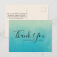Classic wedding thank you post card template features a bright turquoise watercolour design on the front, and a customizable message at the back. You can personalize it with the customize it button. Send out your wedding thank you message as newly weds to your friends and family using this beautifully, simple thank you wedding photo postcard with the words "thank you" written in a white handwriting script text overlay.