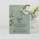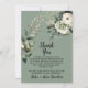 Wedding thank you card featuring neutral flowers and leaves on green sage and blush taupe. Matching collection available.
