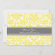 Wedding thank you for the gift cards in elegant bright canary yellow, dark charcoal grey, and white classic vintage floral damask pattern. Fully customisable, two sided, available in many matching products for all your wedding or party needs. Contact us to request a colour change or custom design.