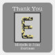 Personalise your wedding thank you cards or favour bags with this elegant letter E monogram. The large initial E features colours of gold and black in a vintage antique style. This letter appears within a light grey square outlined in black. The words "thank you" along with the bride and groom's names appear around the monogram. Quickly and easily change the words of appreciation and the names.