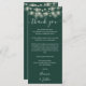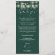 An elegant emerald green wedding celebration thank you reception card featuring pretty string lights. Personalized with your special thank you message set in stylish typography. A special keepsake thank you to your guests. Designed by Thisisnotme©