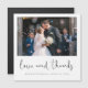 This simply chic photo wedding thank you magnet template features a crisp modern look and a distinctive square shape. We've given this minimalist design a splash of panache with 'love and thanks' below the photo in black in a flowing script in all lower case that lends a warm, familiar accent. This part of the design cannot be altered. You can easily edit the other text not just to show your own details but also suit your taste, picking your favourite colours and fonts. The names and date text are a very dark grey that's in fact mostly black. Use the intuitive design tools, your favourite photo and your inspiration and make it uniquely yours! And please browse our wedding thank you collection for other simply chic modern wedding thank you cards in various formats!