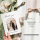 Minimal script photo wedding thank you card with personalised message on the back.