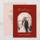 Express your gratitude with this modern wedding thank you card, featuring a bold terracotta red background, elegant script typography, and a soft arch photo frame for a timeless look. The minimalist design paired with a personalized photo creates a heartfelt keepsake your guests will cherish. Perfect for modern, romantic, or boho-inspired weddings.