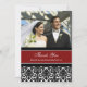 Wedding custom photo thank you for the gift cards in elegant red, black and white classic floral damask pattern. Fully customisable, two sided, available in many matching products for all your wedding or party needs. Contact us to request a colour change or custom design.
