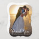 Wedding Thank You | Wedding Photo Note Note Card.Send out your wedding thank you message as newly weds to your friends and family using this simple,elegant,memorable thank you wedding photo flat card with your wedding photo and the words "thank you" written in a white script handwriting typography text overlay. Replace the sample photo with your own wedding photo to make a custom,personalised thank you card.