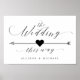 Simple Elegant Calligraphy Script Wedding This way Arrow pointing Left directional Sign, in beautiful flowing fancy letters and your personalised names. A stylish yet simple formal design in black and white or any background colour you choose. Just click the customise further link, shown under the text personalisation area on the right, and choose your custom colour background. This sign poster template makes it fast and easy to create stunning additions to your wedding decor. Signs can be enlarged, there are many sizes to choose from, as well as options for custom framing and matting. Wedding this way custom signage.