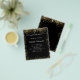 A modern black background, decorated with faux gold sparkles. Personalise and add your names and your wedding day timeline. White text.