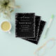 A modern black background, decorated with faux silver sparkles. Personalise and add your names and your wedding day timeline. White text.