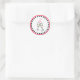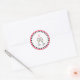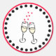 Fun round wedding, anniversary, or engagement stickers, with cartoon champagne glasses toasting each other, with little hearts floating up. The white background has black polka dots around the edge and a dark pink frame. Customise to add any text you want. Great with our matching engagement party invitations.