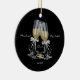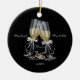Our First Christmas Ornament features a stylish pair of champagne glasses with a set of wedding rings set on a black background! Personalise with your information and date and you're all set to go! Wonderful dated keepsake gift for your first christmas and a great addition to you christmas ornament collection.