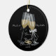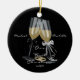 Our First Christmas Ornament features a stylish pair of champagne glasses with a set of wedding rings set on a black background! Personalise with your information and date and you're all set to go! Wonderful dated keepsake gift for your first christmas and a great addition to you christmas ornament collection.
