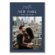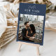 Add a special finishing touch to your wedding reception tables with these custom photo table number cards. Name each table after a memorable travel destination and add a photo and the destination name to these unique card holders. Your photo is aligned at the bottom, with the location name and your initials and wedding date centered at the top on a navy blue background.
