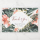 Tropical with Golden Frame and Peach Pink Flowers Mini sparkling wine Bottle labels for your wedding decorated with palm leaves, tropical flowers and burgundy handwritten text thank you. Perfect for a modern wedding in a tropical style. It's easy to personalise.