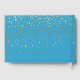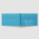 This guest book is shown in Turquoise Blue with a curtain of golden-coloured petite stars on both front and back are splattered all over this guest book. Front has text reading your two personalised names in a fancy script, your last name in bold text style.