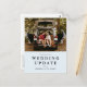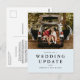 Need to cancel or postpone your wedding due to an unfortunate circumstances? Disasters like pandemics, natural disasters, disease, death can deal a crushing blow to a big day. Send a notice to friends and family with this simple and tasteful postcard that includes one photo. The back includes a large block of custom text with suggested wording. There is also room for you to sign it. The sky blue and black colour scheme can be edited by clicking "customise further." Also works for other events that need to be postponed like graduation parties, proms, fundraisers, galas, family reunions and more.
