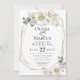 A spring or summer garden wedding is not complete without a beautiful display of flowers, Shades of pale blush and alabaster white magnolias and peonies - a gold geometric multi faceted terrarium style frame adorned with greenery and floral bouquets. Reverse is a complimentary coordinated colour. Customise text, font style, colour and size. Original artwork created for the BarefootBride™ by © WhimsicalArtwork™ - This is part of a complete Wedding Stationery Suite with matching wedding, baby shower and other event stationery.