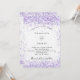 A white background. Decorated with violet, lavender colored faux glitter. Personalize and add your names and details.
