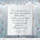 Write your own wedding vows on a backdrop. Featuring the bride and groom's names and wedding date. Edit this reception or ceremony wall hanging sign with calligraphy sayings.