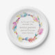 Wedding watercolor Bohemian feather and beads wreath bride and grooms personalised name and wedding date paper plates. A great personal addition to your wedding tables or for after wedding drinks or a wedding after party. Personalise with your wedding details currently reads in the spirit of love two hearts unite. Perfect for a boho / bohemian wedding, feather and beads barefoot native tribal or hippie style wedding, engagement, or anniversary. Original watercolor art painting and design by Sarah Trett. www.sarahtrett.com for www.mylittleedenweddings.com