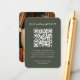 Simple, stylish wedding website photo enclosure card in a modern minimalist design style with an elegant natural script typography in classic white on an olive green background, with an informal handwriting style font. The text can easily be personalised with your names, wedding website, scannable QR code and message for a unique one of a kind wedding design to keep your friends and family up to date about your upcoming special day. The image shown is for illustration purposes only to be replaced with your own photo. The placeholder image is of a happy couple, the woman is wearing a vintage lace dress and the man is wearing an informal linen suit. They are in a loving pose amongst romantic festoon lighting. If you need any help customising this product, please contact me using the message button and I'll be happy to help.