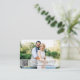 Modern Minimalist Simple Wedding Website Enclosure Card with your QR Code. Couple photo with text overlay. Dusty Blue background.
